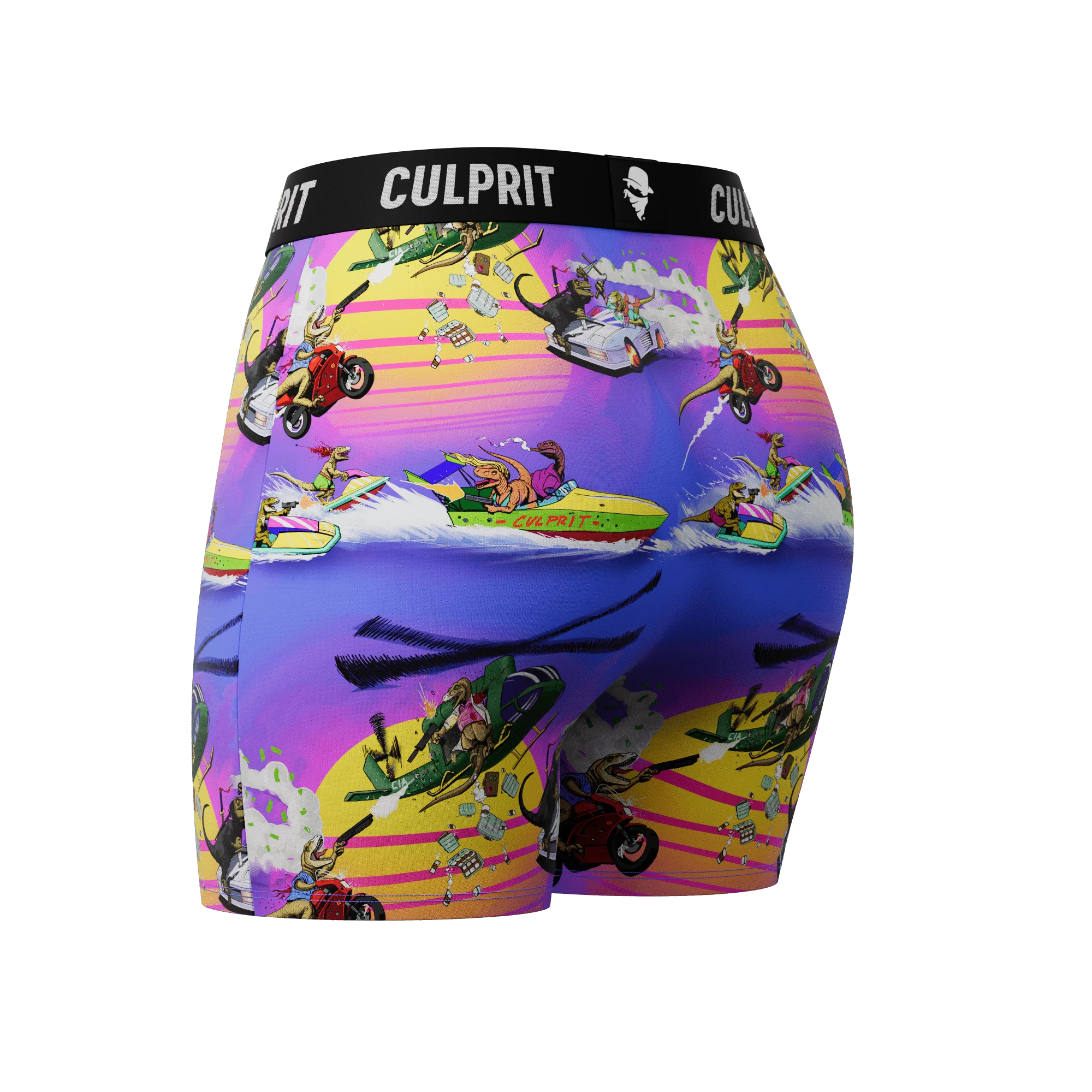 It's all your favorite things in one print: ninja raptors, vapor-wave sunsets, the 80s, drug deals gone bad, gun-toting babes, and standup jetskis. Get these before they're extinct!